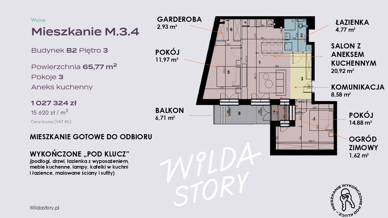 Prezentujemy mieszkanie M.3.4 o powierzchni 65,77 m², zlokalizowane na 3. piętrze w budynku B2(znajdującym się w dziedzińcu) . Idealna propozycja dla osób, które chcą szybko się wprowadzić i urządzić wnętrze we własnym stylu.